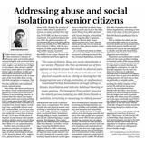 My Editorial Page write up on Social Isolation of Senior Citizens 22/06/2018 My write up on the grim reality around, published on Editorial Page 6, Da